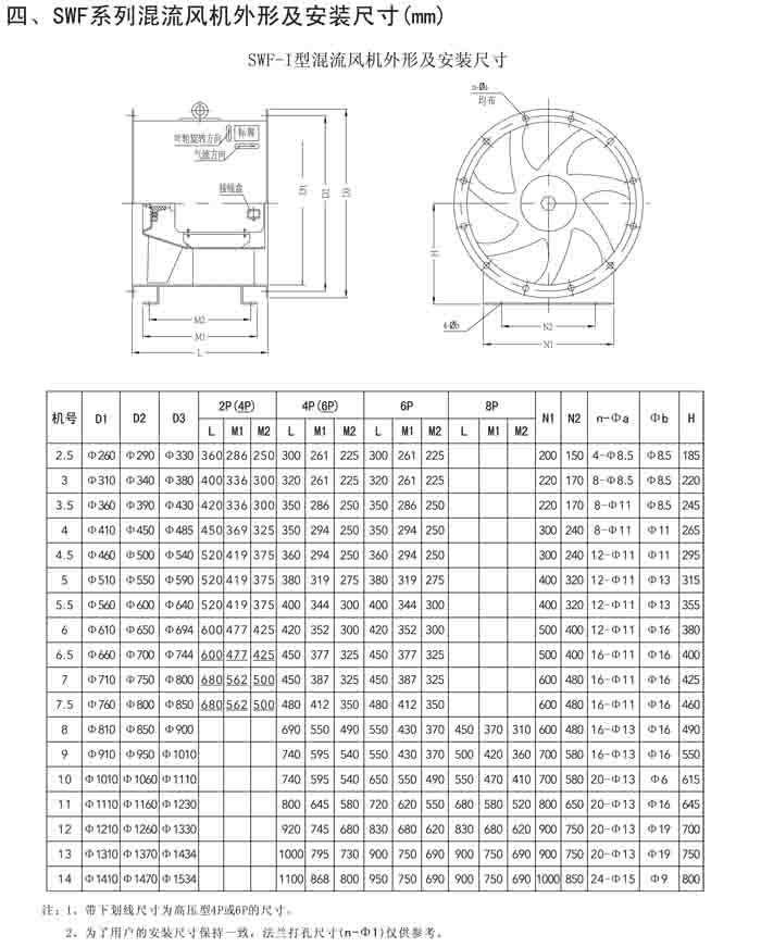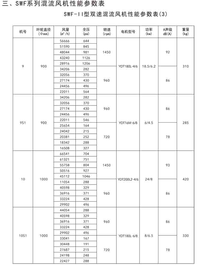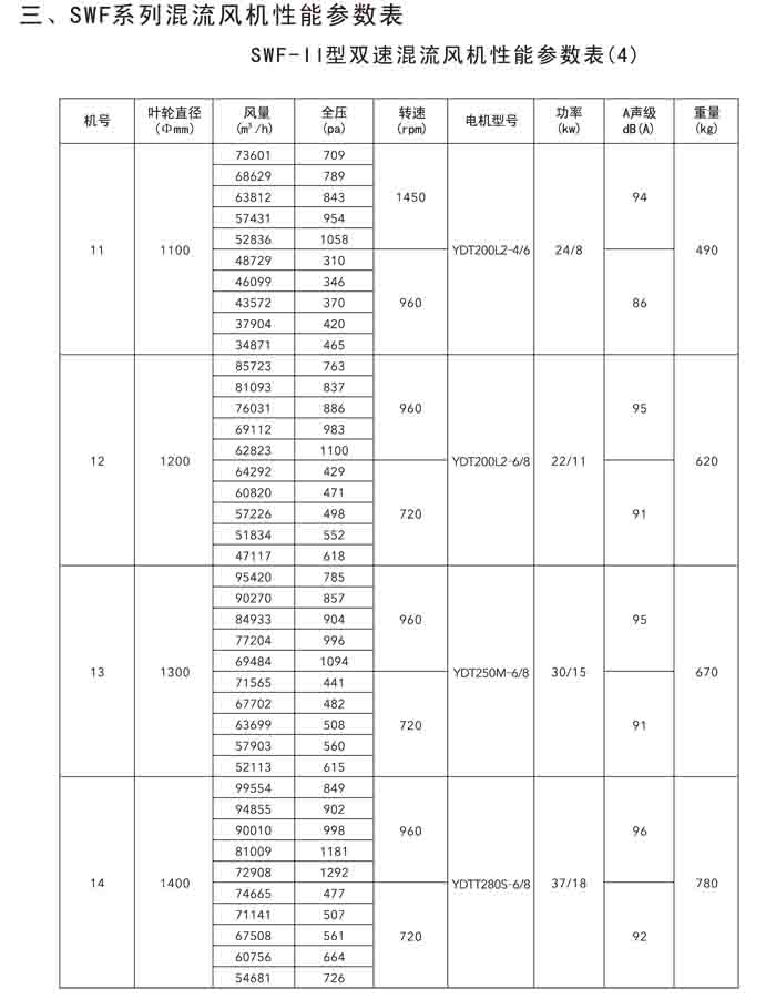 三、SWF-IV(HL3-2A)、HTF-PY(PYHL-14A)系列節(jié)能混流風(fēng)機