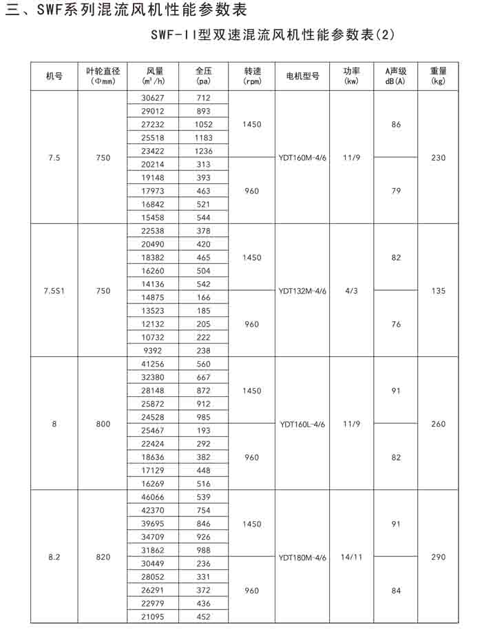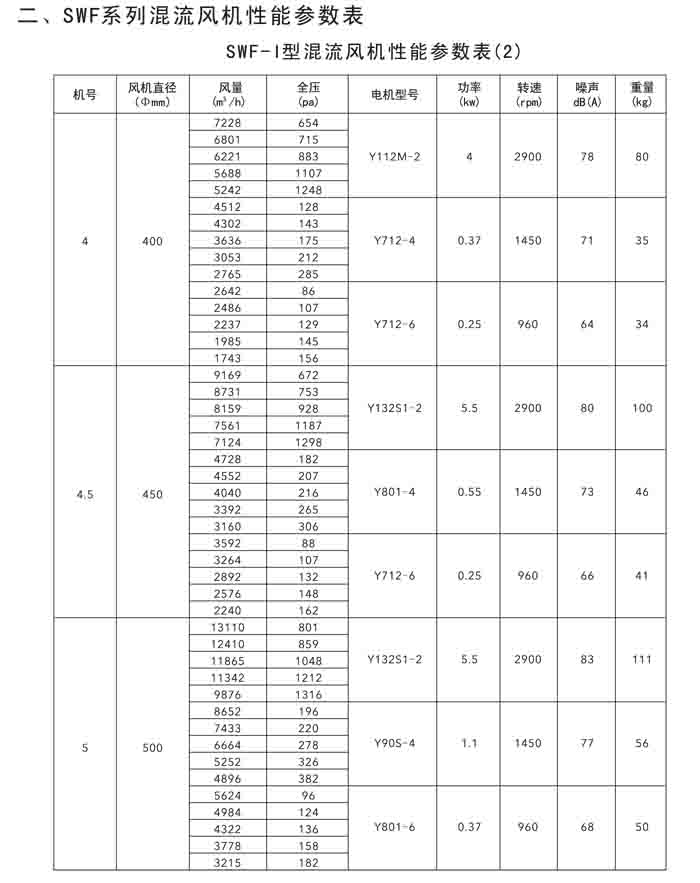 二、SWF(HLF、GXF)-I、II、H 系列高效混流風(fēng)機